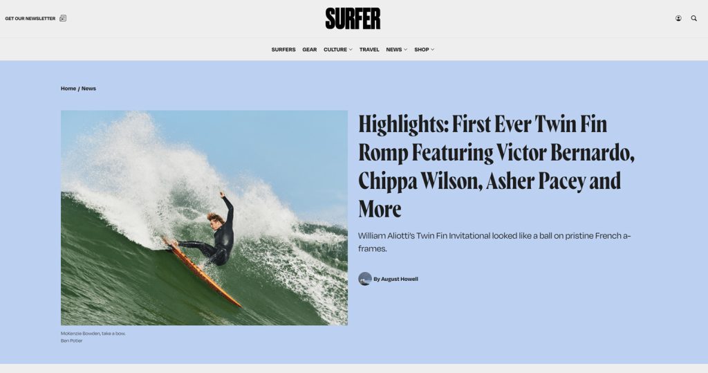 The TWIN FIN INVITATIONAL is an independent surf competition created by WILLIAM ALIOTTI celebrating the timeless style and creativity of twin fin surfing. After the success of the first edition, which brought together 34 of the world’s best free surfers in an authentic and aesthetic format.